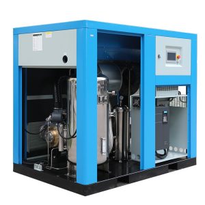 Винтовые компрессоры с двойным сжатием: Обеспечивают более высокое давление и эффективность при меньшем потреблении энергии, подходят для крупных производств с высокими требованиями к давлению.